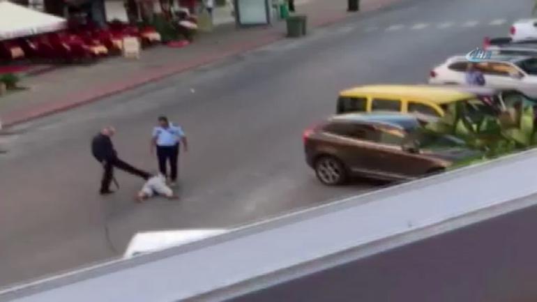 Cep telefonu kamerasıyla çekilen ve sosyal medyada paylaşılan görüntülerde, kendinden geçmiş halde sokakta asfalt zeminde yatan kadının yanına gelen 2 polis, önce kadınla konuşuyor. Kadının kalkmaması üzerine polislerden biri önce kadına tekme atıyor. Yerde yuvarlanan kadına defalarca tekme atan polis memuru daha sonra elindeki copla vurmaya devam ediyor. Yerde oturan kadına tekme ve copla vurmaya devam eden aynı polisin, sonra kadını saçından tutup sürüklediği görülüyor.