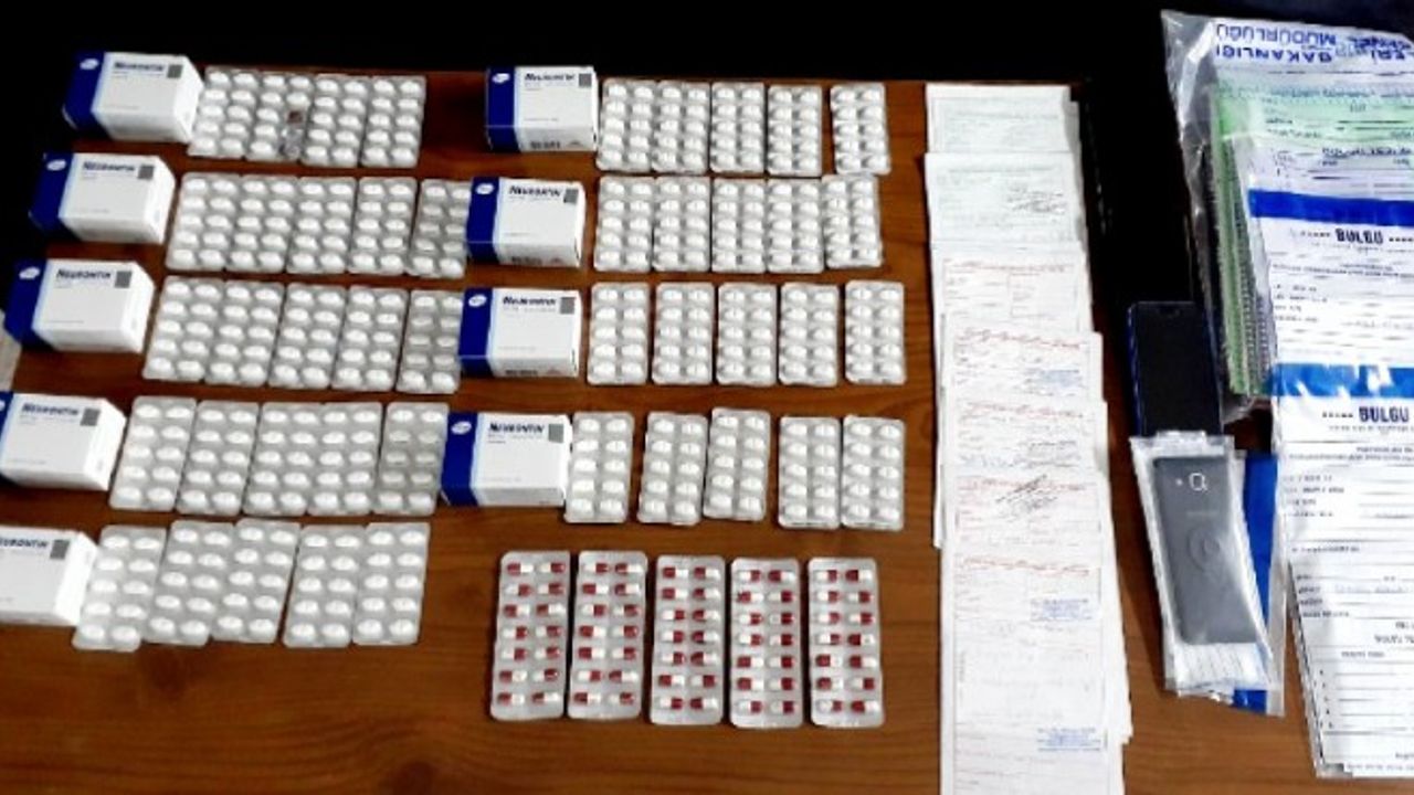 Otomobilde yapılan aramada, 45 bin 379 yeşil reçeteye tabi hap ele geçirildi.