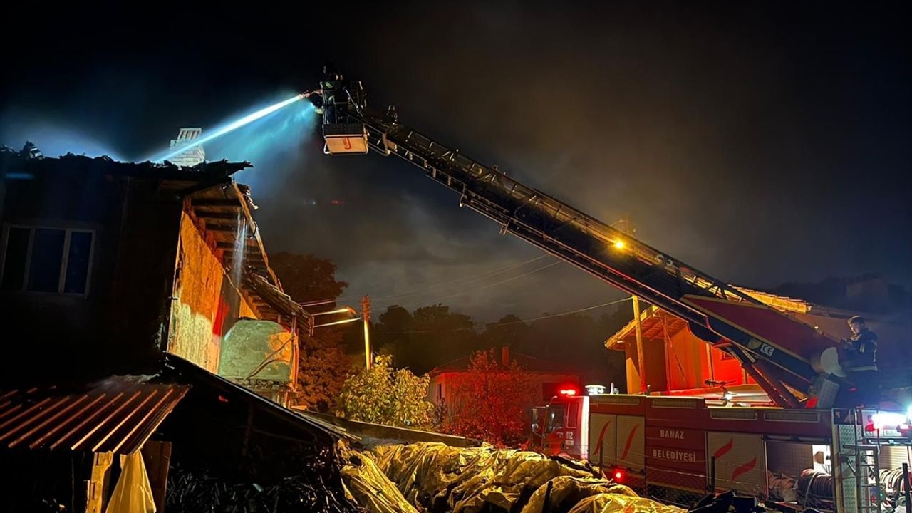 Söndürülen yangında, evin çatısı kullanılamaz hale geldi.