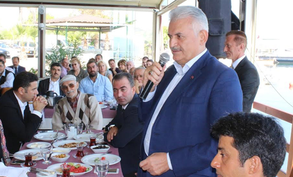 Urla ziyaretinin ardından Seferihisar'a gelen Binali Yıldırım Mandalina Birliği Kooperatifinde üreticiler inşaat işçileri ve balıkçılar ile bir araya geldi. Yarımada bölgesinde etkili olan mandalina sektörü hakkında bilgi alan Yıldırım sektörün sorunlarını dinledi. 'Bize oy vermeyenlerden bile bu seçimde ülkemizin geleceği için ödünç oy talep ediyorum.' diyen Yıldırım şöyle konuştu; 'Sorunları torunlara bırakan anlayışımız olmadı. Etrafımız ateş çemberi. Ülkemizde 32 senedir süren terör var hem canımızı yakıyor hem malımıza kastediyor. Onlara karşı durmanın yolu güçlü olmaktan geçer. Birlik ve kardeşliğin kıymetini bilmemiz gerekir.'
