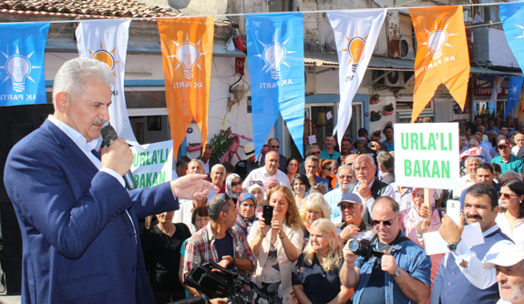 Urla merkezde düzenlenen mini miting ile vatandaşlara seslenen Binali Yıldırım 1 Kasım seçimlerinin ülkenin istikbalini belirleyecek öneme sahip olduğunu ifade etti. Yıldırım seçimlerde Urlalılardan destek isterken 'vereceğiniz desteğin kat kat fazlasını geri alacağınıza söz veriyorum.' dedi. 'Biz yolları böldük gönülleri birleştirdik.' diyen Yıldırım kendisine 'Yolların Kralı' diyenlere 'biz olsak olsak bu milletin hizmetkarı oluruz. Adam ola ki bıraka bu dünyada eser, eseri olmayanın yerinde yeller eser. Çok şükür çok eserimiz var' dedi ve yapılan hizmetleri anlattı.