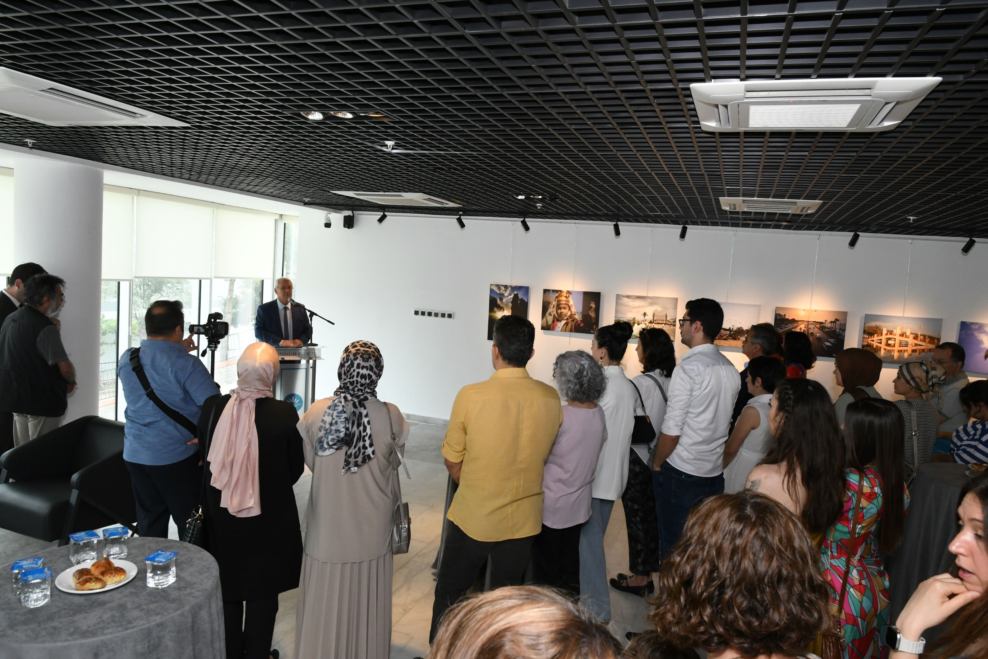 Başkan Selvitopu ve konuklar daha sonra sergiyi gezerek, eserleri tek tek inceledi.