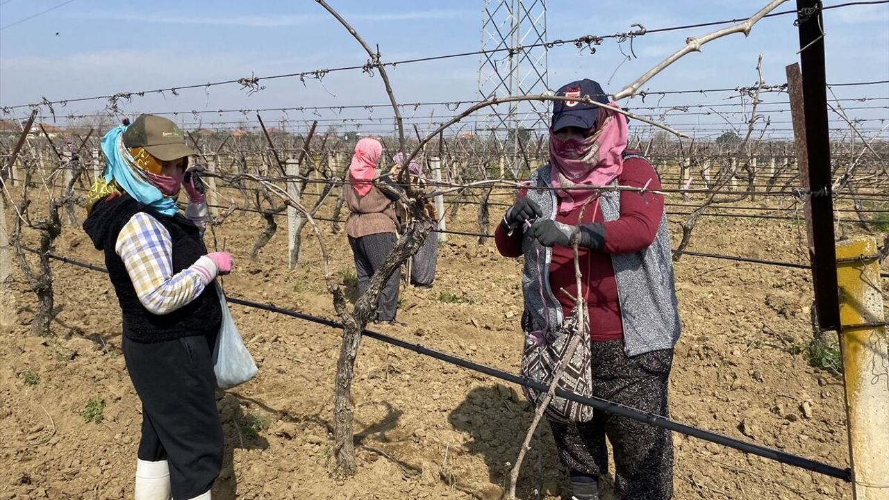 Bağlarda çalışan Hülya Kocaman ise yağışlar nedeniyle işlerin geciktiğini belirterek, "Şimdi işlerin sonuna gelmek üzereyiz. Bu son bağlarımız. Üzüme hazırladık, üzümün uçları görünüyor artık." diye konuştu.