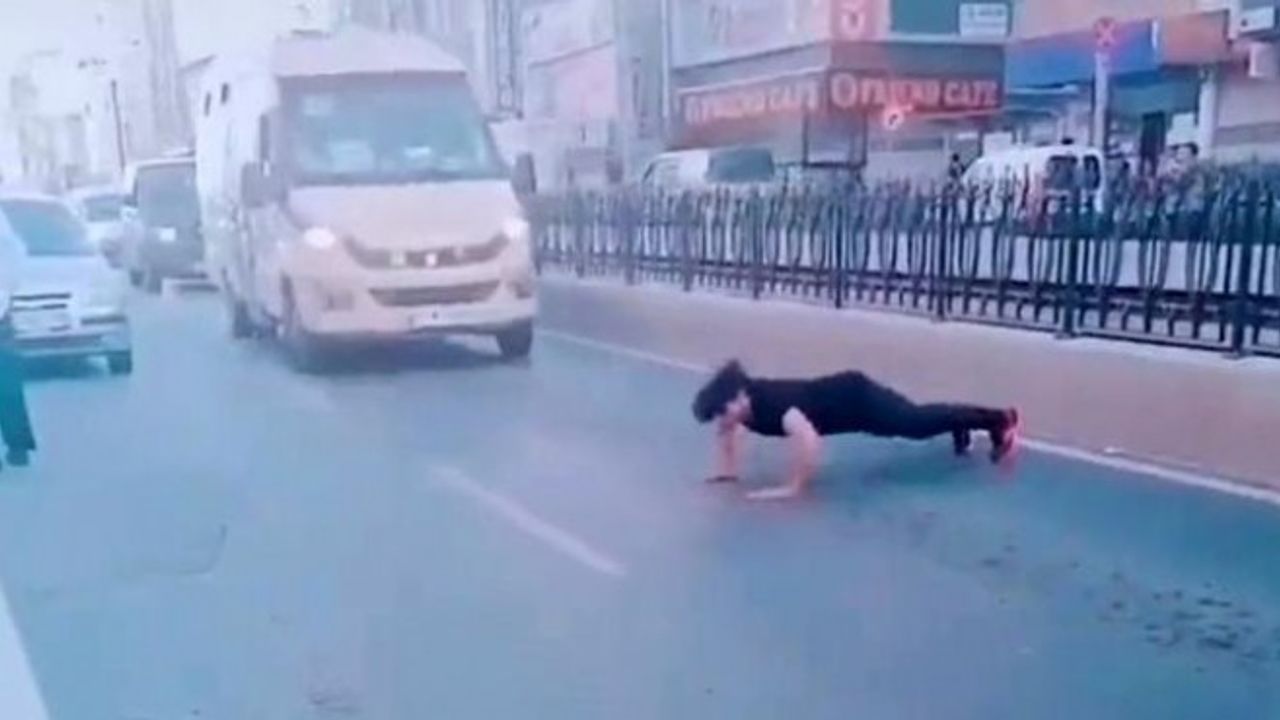 Alınan bilgiye göre, Eski Edirne Caddesi'nde araçların önüne geçerek yolda şınav çeken Pakistan uyruklu Ali R, o anlara ait videosunu sosyal medya hesabından paylaştı.
