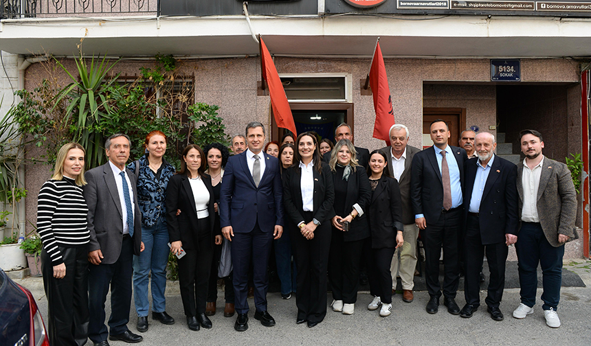 Bornova Belediye Başkanı Ömer Eşki, CHP Genel Başkan Yardımcısı ve Parti Sözcüsü Av. Deniz Yücel, CHP Bornova İlçe Başkanı Av. Ertürk Çapın ve CHP Kadın Kolları MYK Üyesi Rahşan Halat Nazlıoğlu, Bornova Arnavutları Kültür ve Dayanışma Derneği’ni ziyaret etti. Dernek Başkanı Melek Taşol ve yönetim kurulu üyeleriyle yapılan buluşmada hem ulusal gündeme hem de yerel iş birliklerine dair güçlü mesajlar verildi.