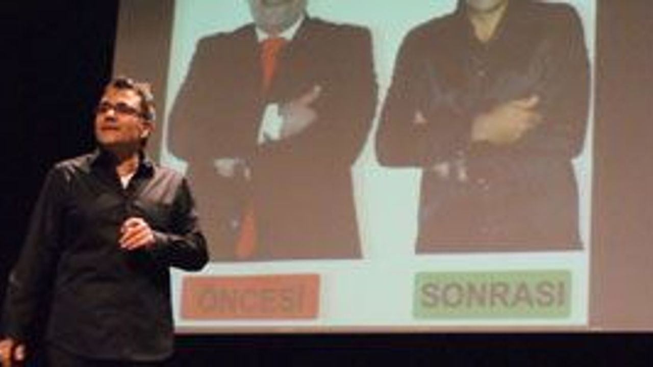 İZMİR - Eğlenceli programlara imza atan Mesut Yar 'Mesut Yarım Nereye Gitti?' isimli kalorisi düşük tek kişilik gösterisiyle İzmirlilerle buluştu. Gazeteci, televizyon programcısı ve yazar olarak yakından tanıdığımız Mesut Yar Konak Belediyesi'nin düzenlediği gösteriyle İzmirlileri bir kez daha kahkahaya boğdu. Genç yaşlarda obez olduğunu ve 140 kilonun üzerine çıktığını anlatan Mesut Yar,' Bir gün aynaya baktım ve kilo vermeye karar verdim. Çünkü kandaki yağ oranım 2 bin 500 seviyesine çıkmıştı Yürüyen bir yağ tulumu gibiydim' diyerek diyete başladığını söyledi. Kilo verdiği dönemi fotoğraflarla destekleyen ve esprili bir şekilde anlatan Yar salonu dolduranları kırıp geçirdi.
