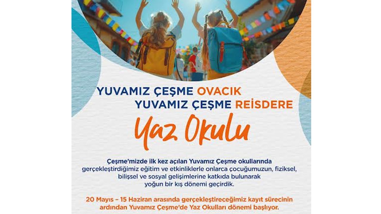 Yaz Okulu kayıtları, 20 Mayıs – 15 Haziran tarihleri arasında alınacak. Başvuru yapmak isteyen vatandaşlar, Ovacık ve Reisdere’de bulunan Yuvamız Çeşme Çocuk Etkinlik Merkezleri’ne yapabilir; detaylı bilgi için 0232 750 0 750 numaralı telefonun 2710 veya 2707 dahili hatlarını arayabilir.