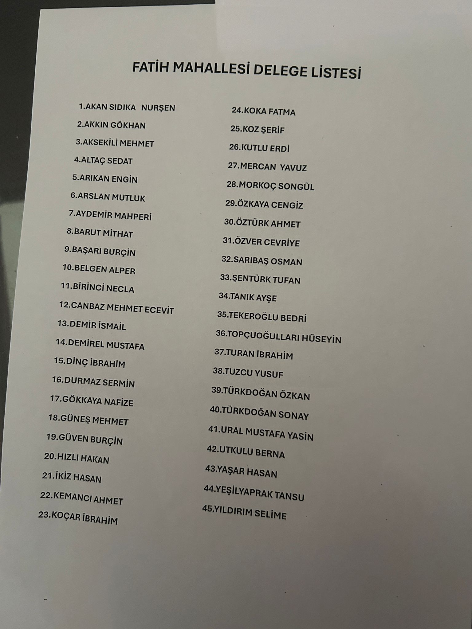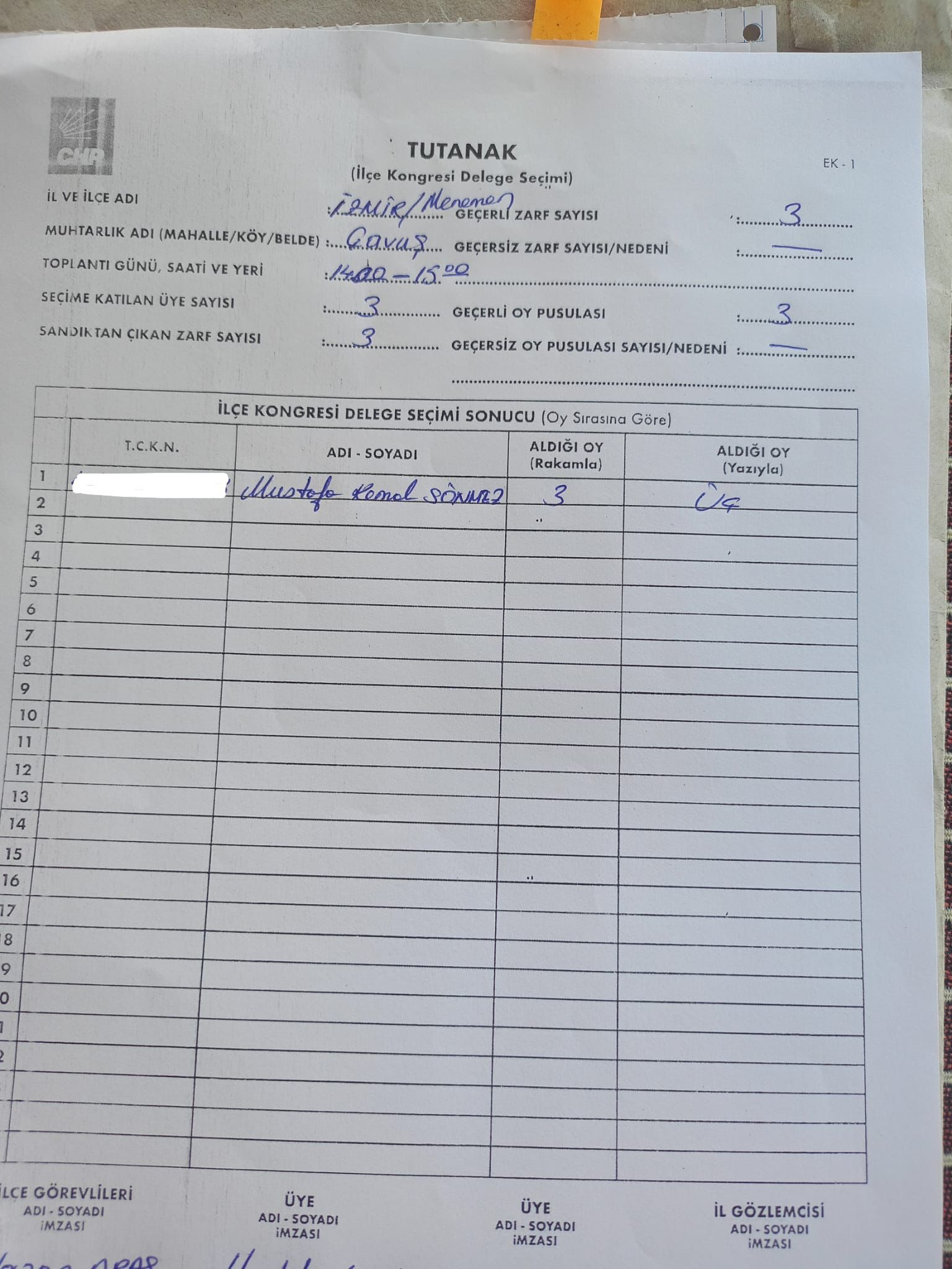 Menemen'de Çavuş, Kesik, Musabey, Mustafa Kemal Atatürk mahallelerinde üyeler mahallede delegelerini seçti. 3 üyenin bulunduğu Çavuş'ta tek delege olarak 2024 yerel seçimlerde Menemen'den aday adayı olan Mustafa Kemal Sönmez oldu.Menemen'de tek liste giden Kesik mahallesinde Nazmi Akın, Hasan Tahsin Sevik delege seçildi. Maltepe Mustafa Kemal Atatürk Mahallesi’nde Bayram Doğu, Melih Keskin Kılınç, Maltepe 75.Yıl Cumhuriyet Mahallesinde Refiye Yüksel, Zerrin Yıldırım, Kesik Mahallesi’nde Nazmi Akın, Hasan Tahsin Sevük ve Musabeyli Mahallesi’nde Mehmet Çakır delege olarak değişti.