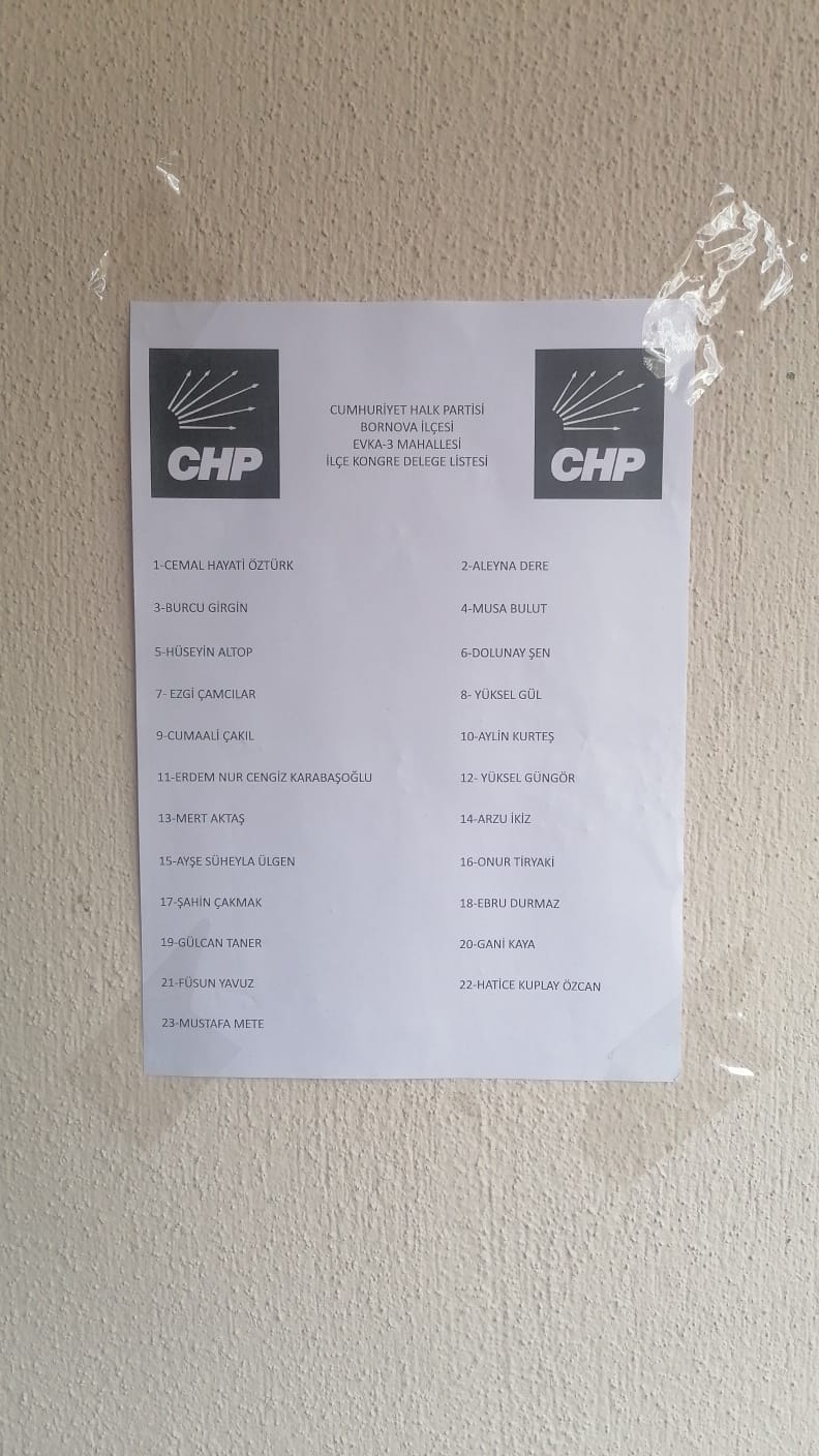 Balçova’nın en büyük mahallesi olan Onur mahallesinde Kırklar F Tipi Cezaevi’nde tutuklu bulunan İl Başkanı Şenol Aslanoğlu listeye yazıldı. Balçova Belediye Başkanı Onur Yiğit ise listede ikinci sıraya girdi. Teleferik mahallesinde ise ilk sıraya CHP önceki dönem PM Üyesi Devrim Barış Çelik girerken ikinci sıraya eski Balçova Belediye Başkanı Mehmet Ali Çalkaya girdi.