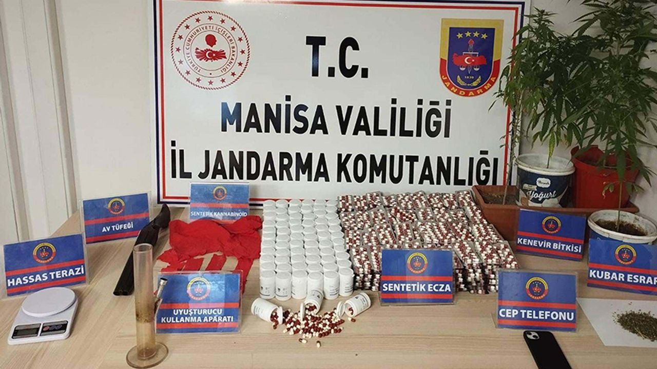 Manisa İl Jandarma Komutanlığına bağlı Salihli İlçe Jandarma Komutanlığı ekipleri, istihbarat çalışmasıyla M.Y. (35) ve G.E.'nin (32) uyuşturucu sattığını tespit etti. Cumhuriyet Başsavcılığı'ndan alınan iznin ardından 2 şüphelinin ev ve araçlarında arama yapıldı. Aramada toplam 8 bin 864 adet sentetik ecza hap 1 hassas terazi, 1 uyuşturucu madde kullanma aparatı ele geçirdi. Ele geçirilen uyuşturuculara el konuldu. İki şüpheli gözaltına alındı. Jandarmadaki işlemlerinin ardından şüphelilerden adliyeye sevk edilen G.E. çıkarıldığı mahkemece adli kontrol şartıyla serbest bırakıldı. Diğer şüpheli M.Y.'nin ise jandarmadaki işlemlerinin sürdüğü bildirildi.(DHA)