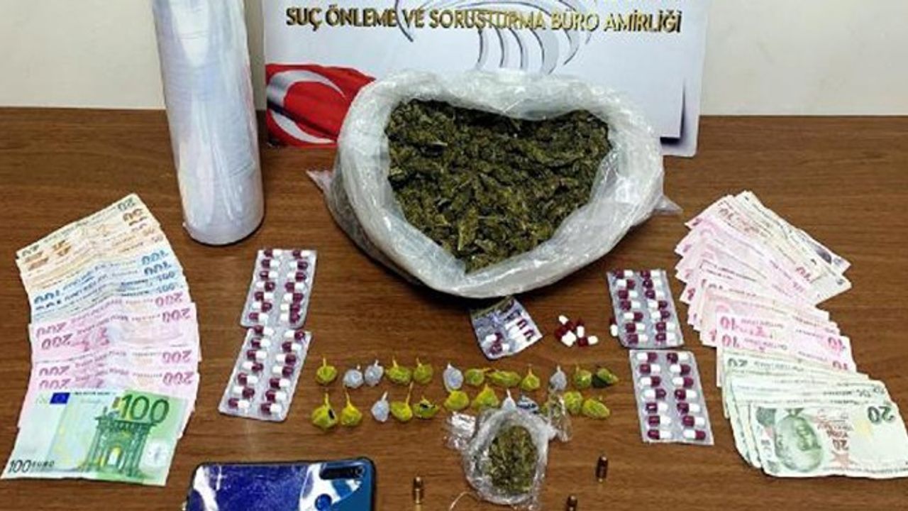 Bayraklı İlçe Emniyet Müdürlüğü'ne bağlı Bayraklı Suç Önleme ve Soruşturma Büro Amirliği ekipleri, E.K. ile A.K.'nin uyuşturucu sattığını belirledi. Harekete geçen ekipler, belirlenen adrese operasyon düzenledi. Baskın sırasında şüphelilerin, evdeki uyuşturucuları balkondan attıkları tespit edildi. Evin çevresinde yapılan aramada, poşet içinde 1 kilo 100 gram esrar bulundu. Depoyu da kontrol eden ekipler, 63 uyuşturucu hap, 29 gram esrar ve 9 milimetre çapında 5 mermi ele geçirdi. Gözaltına alınan E.K ve A.K., sevk edildiği adliyede çıkarıldığı hakimlikçe tutuklandı. (DHA)