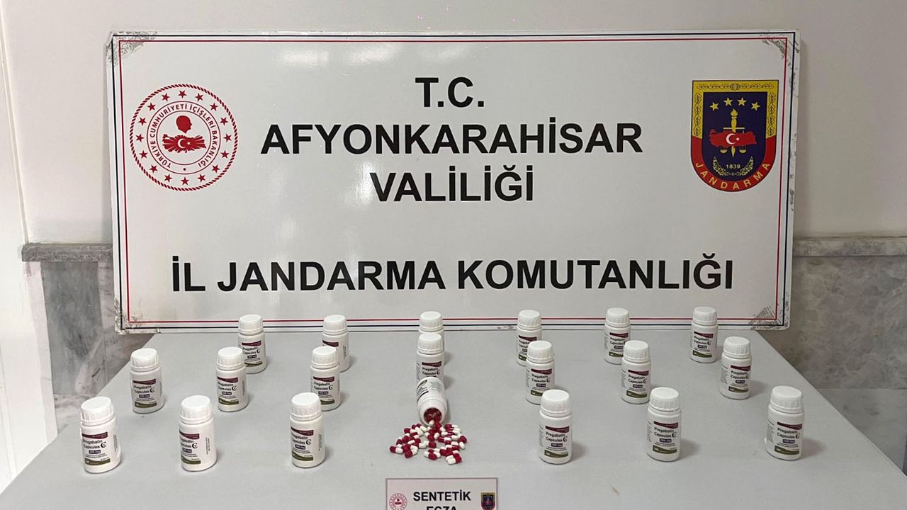 Afyonkarahisar İl Jandarma Komutanlığı ekipleri uyuşturucu ile mücadele kapsamında kentte ikamet eden E.K.'nin, çevre illerden temin ettiği uyuşturucu maddeleri getirerek kendisine ait iş yerinde depoladığı ve uyuşturucu maddeleri Salar beldesinde kullanıcılara satacağı yönünde istihbarat aldı. Harekete geçen jandarma ekipleri, E.K.'yi iş yerinin önünde durdurdu. Ekipler adli makamlardan alınan arama kararı ile E.K.'nin üzerinde ve iş yerinde yapılan aramalarda zeytin kasalarının içerisine saklanmış satışa hazır vaziyette 1120 sentetik uyuşturucu hap ele geçirildi. E.K. gözaltına alınırken olayla ilgili adli soruşturma başlatıldı. (DHA)