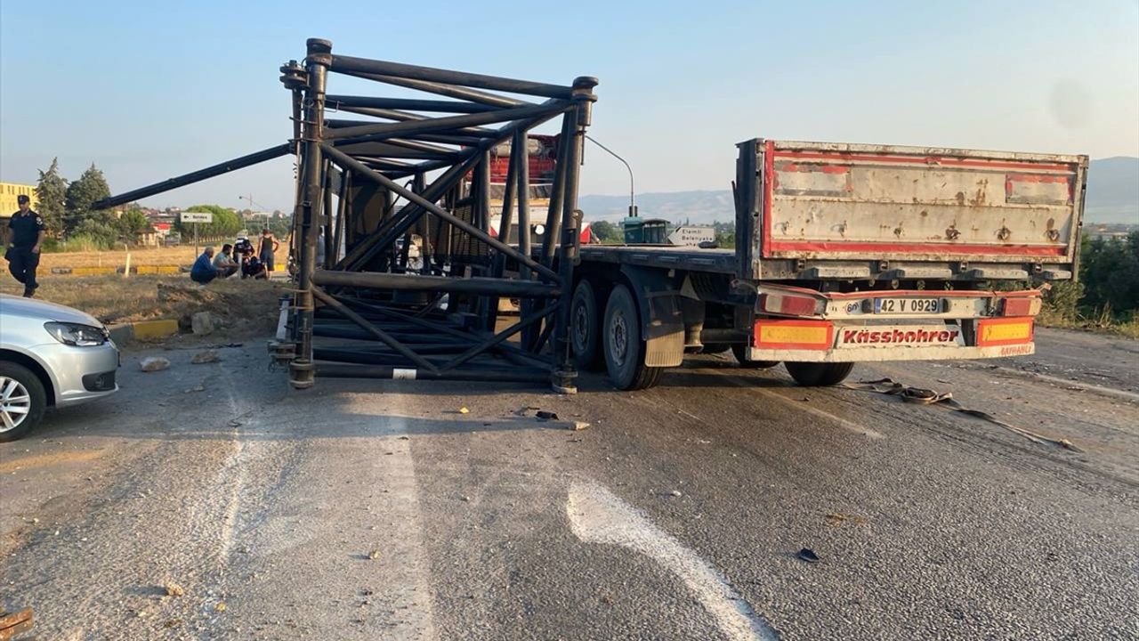 E.K. (23) idaresindeki 42 V 0929 plakalı tır, Alaşehir-Denizli kara yolu Üzümlü Kavşağı'nda M.K'nin (47) kullandığı 09 KP 609 plakalı kamyonetle çarpıştı.